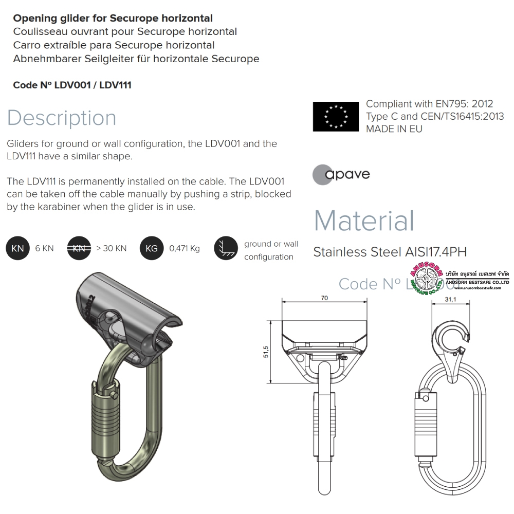 LDV043=D NEO Anchor for horizontal or inclined lifeline