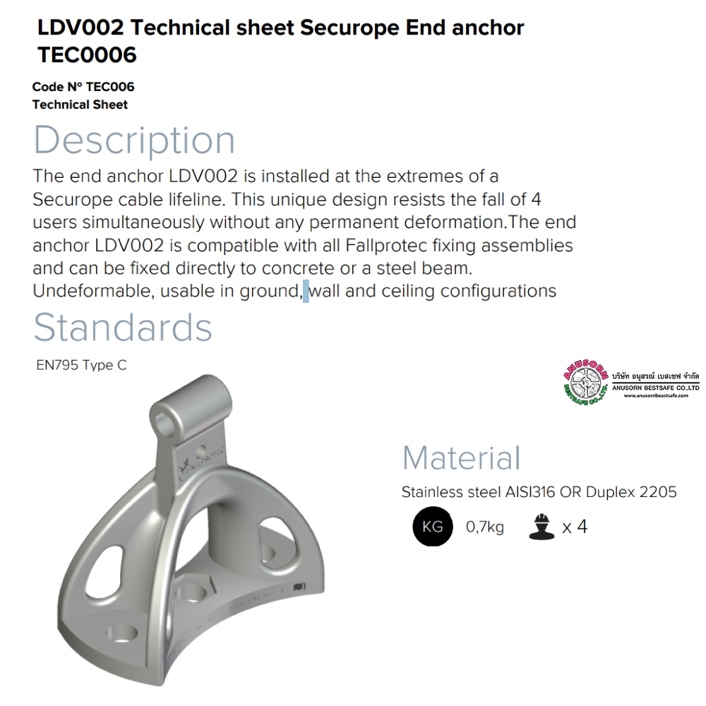 LDV140 SECURA end anchor / SECURA anchor point 300 and up