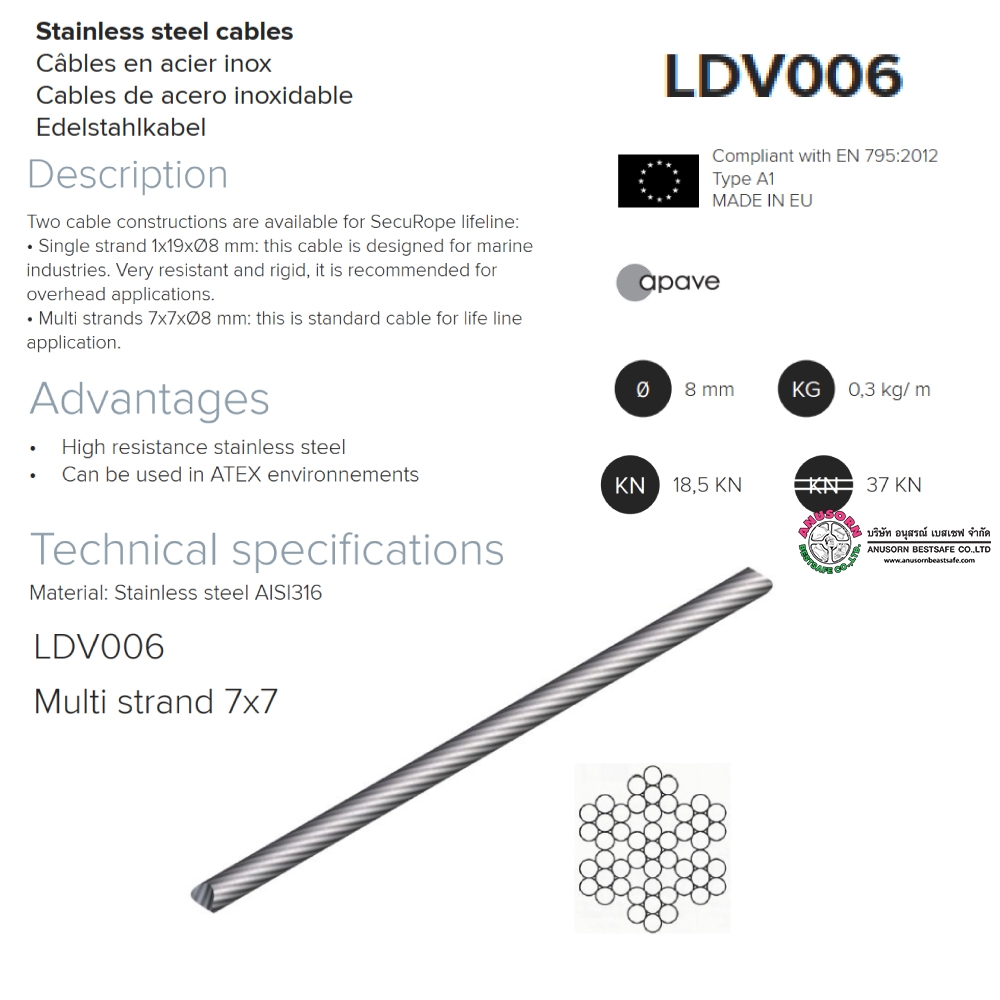 LDV006 Cable Ø 8 mm construction 7x7