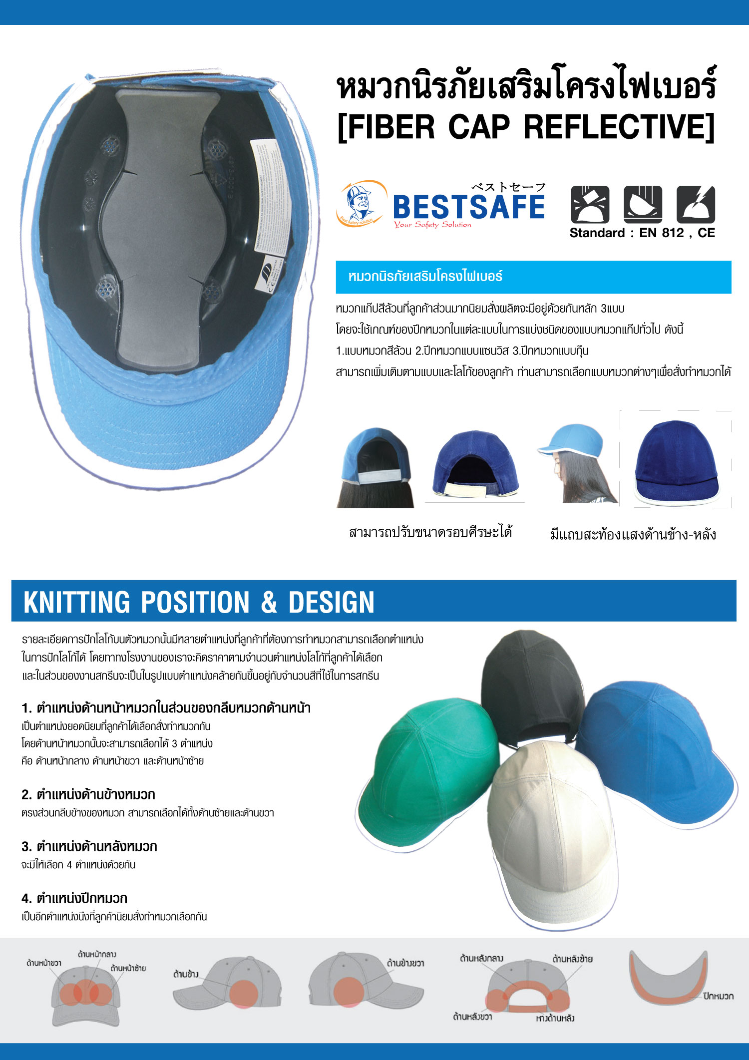 น้ำหนักเบา แข็งแรง ทนทาน สายรัดศรีษะเป็นแบบเข็มขัด สามารถปรับขนาดตามศรีษะได้พร้อมแผ่น ซับเหงื่อ แบบฟองน้ำ (Optional) มีรูระบายอากาศซึ่งช่วยระบายอากาศและเพิ่มความเย็นสบายกับผู้สวมใส่