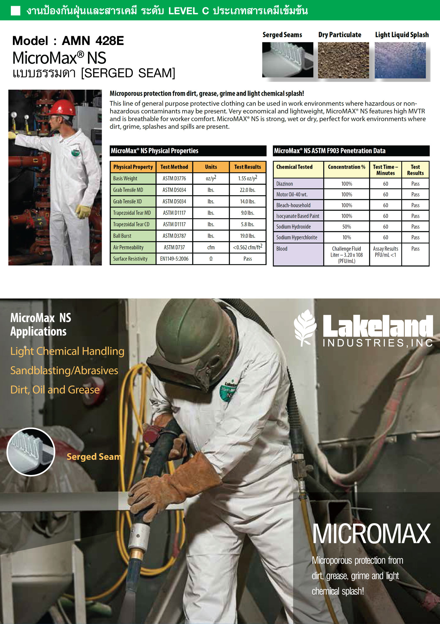 AMN428E MicroMax-Bound #Lakeland ชุดกันสารเคมี ระบายอากาศ ได้ดี ใช้งานป้องกันอันตรายจากฝุ่น ของเหลว และสารเคมีได้